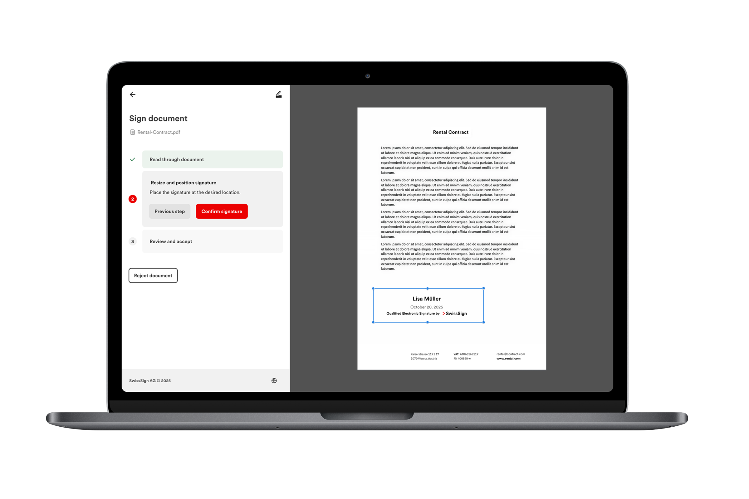 According to the Swiss Federal Act on Digital Signatures (Schweizer Signaturgesetz), a qualified digital signature is only legally valid, in other words equivalent to a handwritten signature, if it’s linked to a certified digital identi-ty. And for that, identification is required beforehand. This is precisely what SwissSign offers.